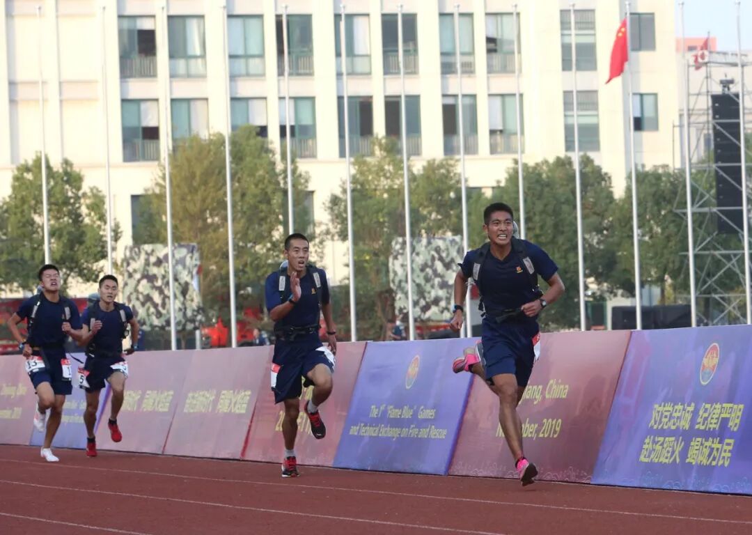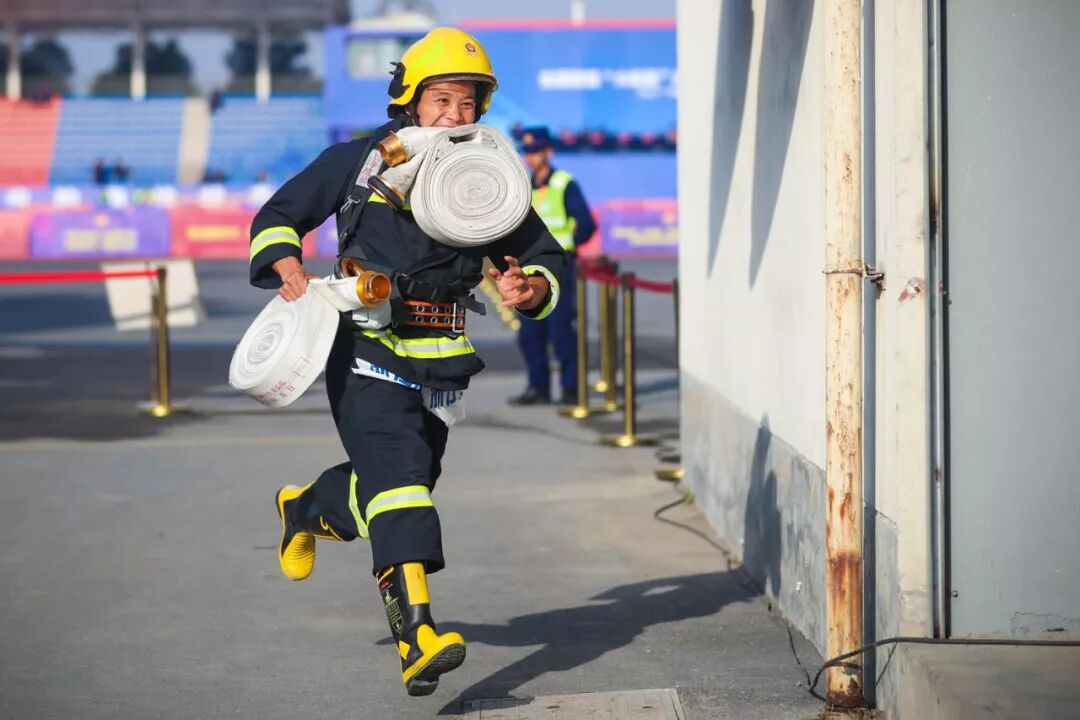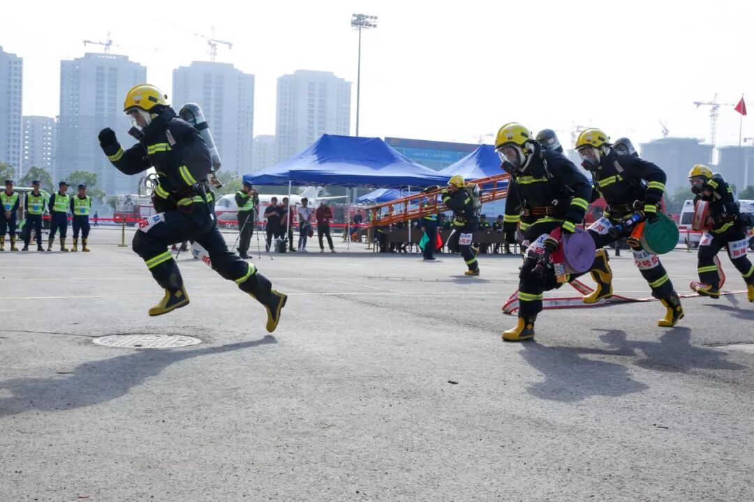 8名消防员默契合作,勇夺第一