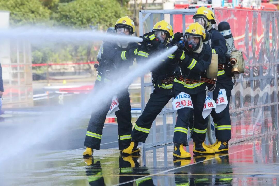 这是一次速度与激情的碰撞,这是一番血性与胆魄的争锋,这是一场业务素养与综合技能的较量。浙江参赛队在面对强手如林的竞争,一分一分咬牙拼、一场一场迎难上,全力为使命而战、为荣誉而战、为胜利而战,取得了比武成绩与精神文明双丰收,团体总分第一名。其中,枪炮协同灭火项目第一名,400米救人物资疏散、负重上10楼、百米障碍救助、60米肩梯登楼等四个项目进入前三,一份份沉甸甸的荣誉,将永远镌刻在浙江消防的光荣史册上。