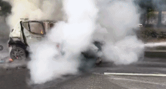 ↓8月10日,一辆新能源在广西南宁街头燃起熊熊大火↓